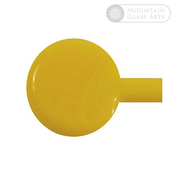 This color is a vibrant, light lemon yellow and when used in conjunction with any of the opaque blues or greens, it gets the same black line reaction as you get when you use the opaque blues and greens with ivory opaque. It is wise to make a core of clear glass under this color if you are going to encase your bead.