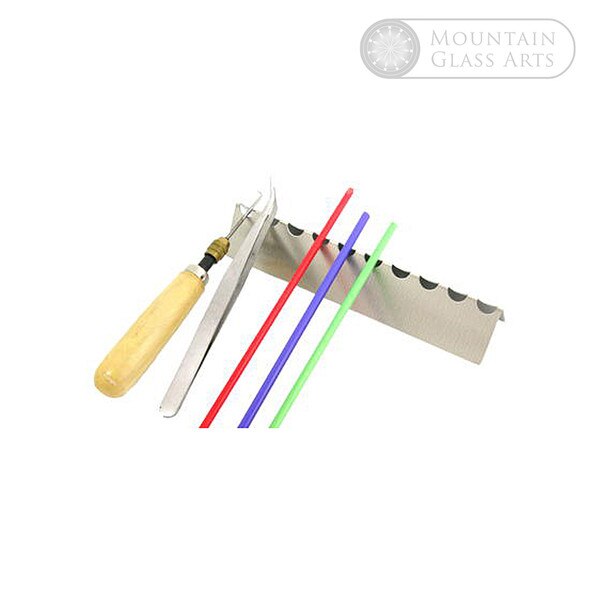 Simple but very helpful. Use to hold your hot glass rods and tools to keep them from burning your work table. Also keeps them free of particles on your table which could end up in your work. The evenly spaced slots make tools and rods easy to see and pick up. 7 1/2" long with 10 slots